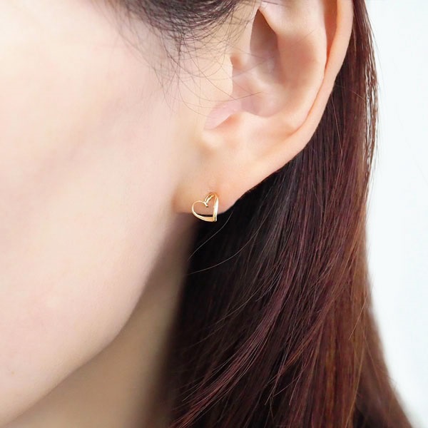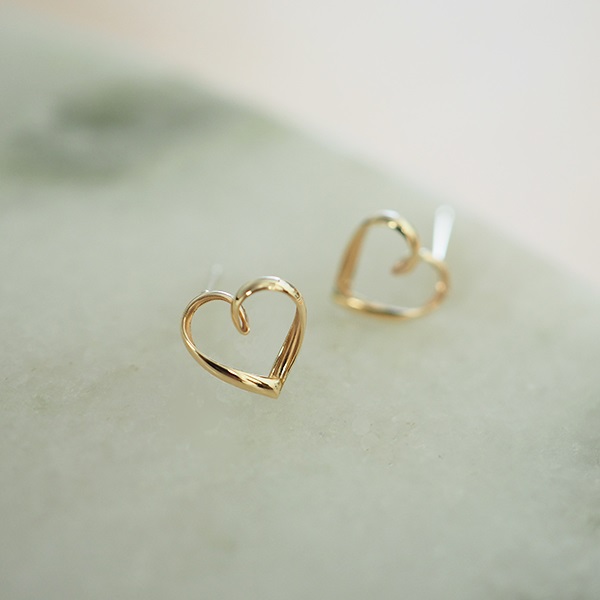 繊細な艶めきを放つK10イエローゴールドが、耳元で優しく煌めくオープンハートのピアス。