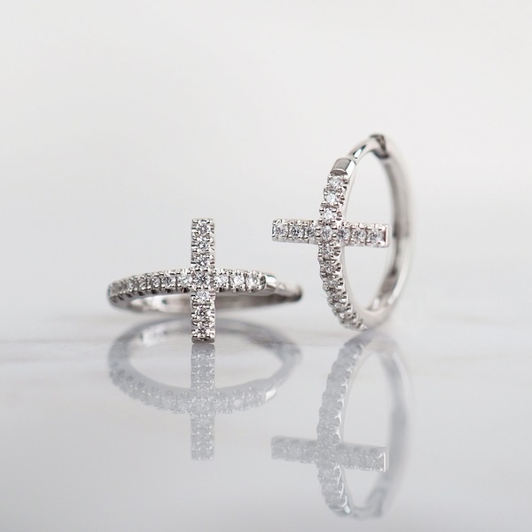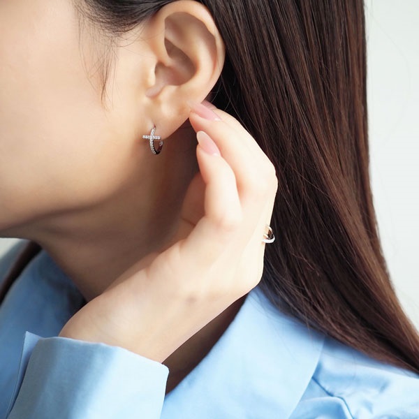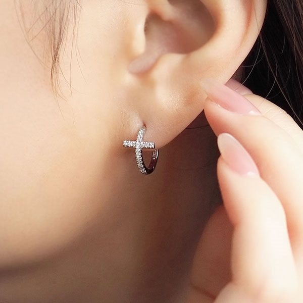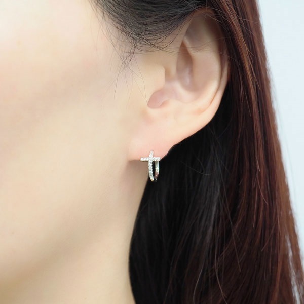 上質なプラチナとダイヤモンドを贅沢にあしらったクロスモチーフのフープピアス。