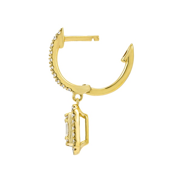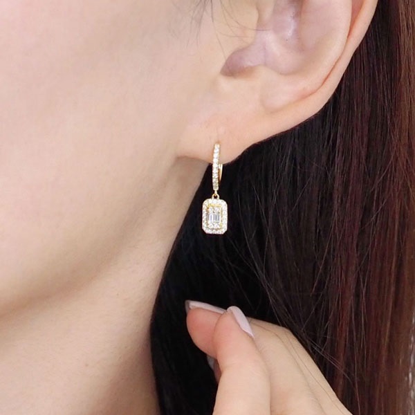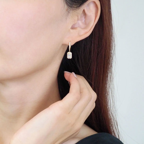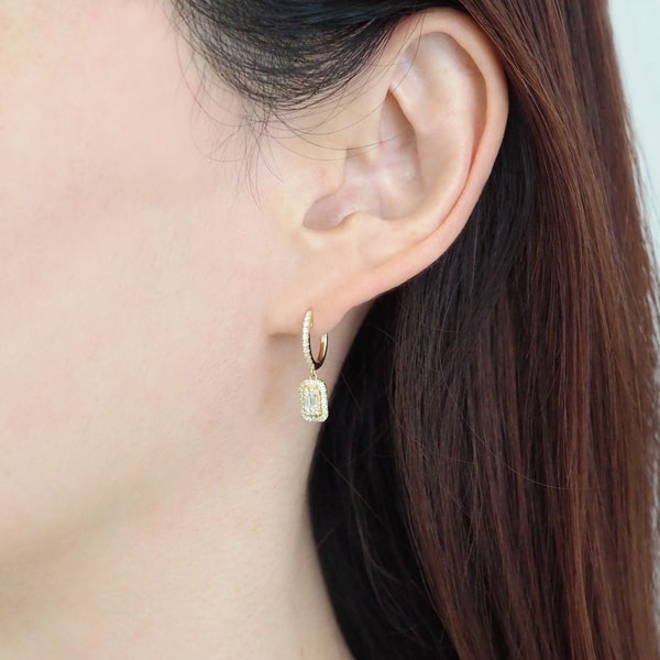 シャープで落ち着いた輝きを放つバケットカットダイヤモンドを、ラウンドカットのメレダイヤモンドで取り巻いた華やかなピアス。トップ部分のスクエアモチーフが顔回りで軽やかに揺れ、モダンで知的な印象を醸し出します。華やかなK18イエローゴールドは、フォーマルなシーンにはもちろん、カジュアルスタイルまで合わせやすいデザインです。SEMPRE(センプレ) イタリア語で“いつも”を意味する「SEMPRE(センプレ)」。 “いつも”をコンセプトに、日々をさりげなく彩り、これからもずっと寄り添ってくれる。そんなシンプルで上質なジュエリーライン。