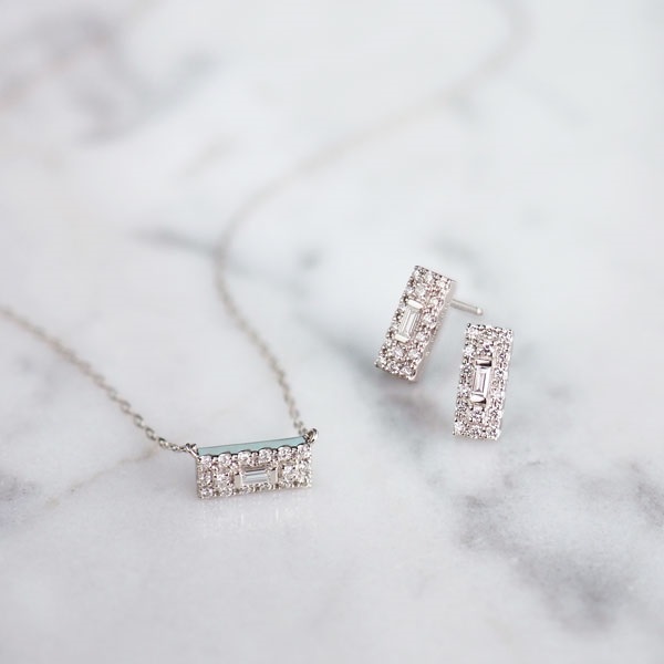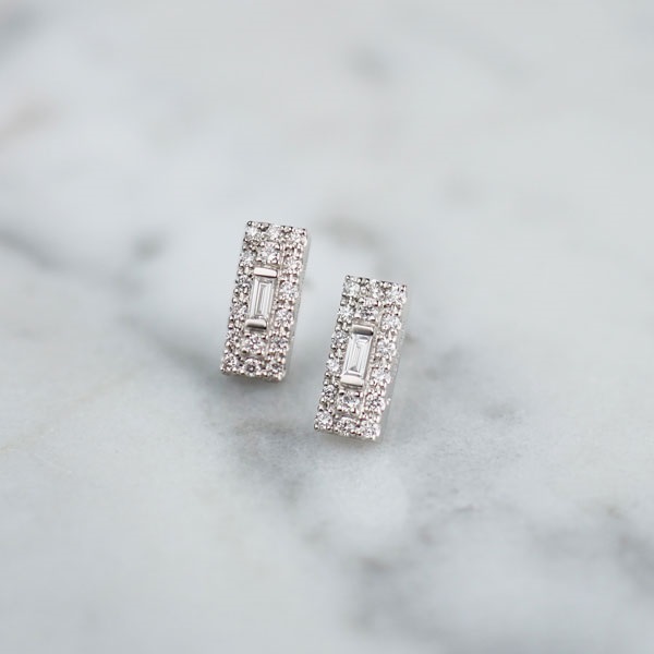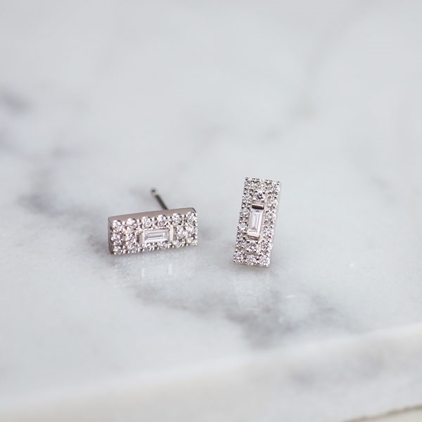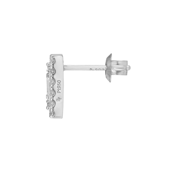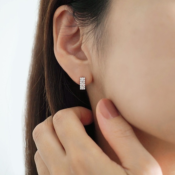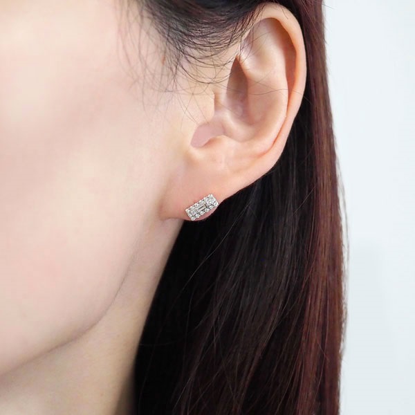バゲットカットのダイヤモンドをメレダイヤモンドで取り巻いたプラチナのピアス。すっきりとした長方形のシルエットがスタイリッシュな印象で、顔周りに上品な輝きを添えます。 耳たぶに沿って斜めになるように着けることで、印象を変えてお楽しみいただけます。カジュアルな服装だけでなく、ジャケットなどのフォーマルな装いにもぴったり。 永く使えるシンプルなプラチナジュエリーは、大切な方へのプレゼントにもおすすめです。同シリーズでネックレスもございます。 セットアップでご着用いただくことも可能です。※2026年3月31日までの期間限定スペシャルジュエリーです。