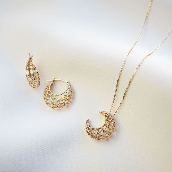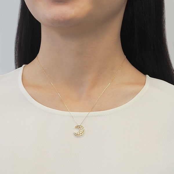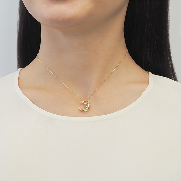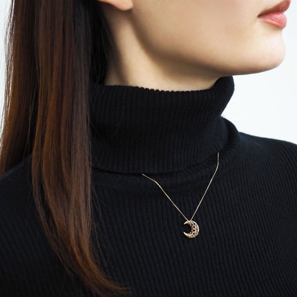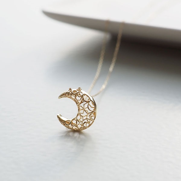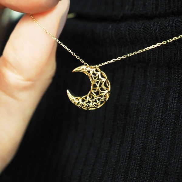 軽やかな透かし模様のスターモチーフで月を象ったネックレス。